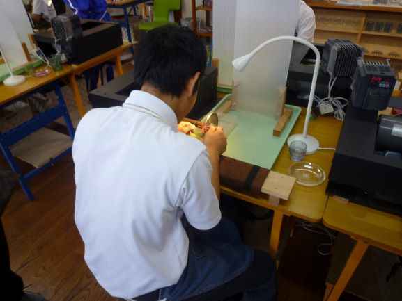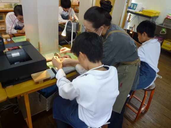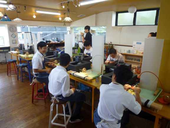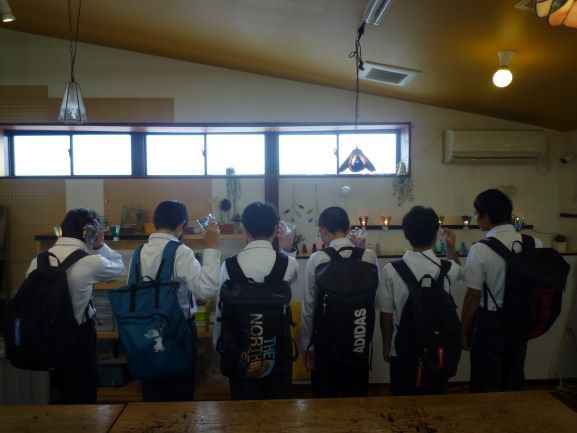 10/2(木)、特別支援学級の生徒たちが長浜駅周辺へ校外学習に出かけました。河毛駅から長浜駅まで電車に乗り、長浜駅~黒壁周辺の散策を行いました。黒壁ガラス館では、「カットグラス制作体験」を行いました。回転している石の刃をガラスのコップに押し当てて、思い思いのカット模様を彫刻しました。素敵なオリジナルのコップができあがって大満足でした。
