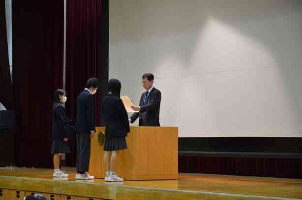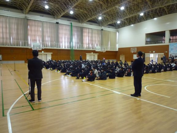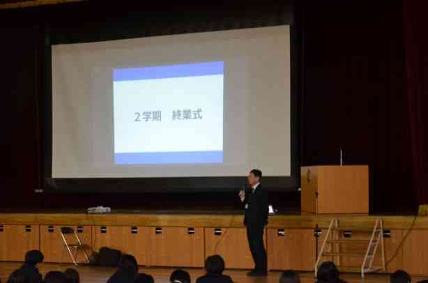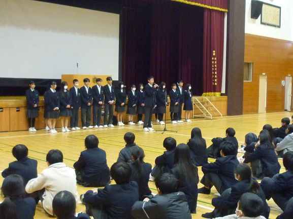 12月23日(火)、2学期の終業式を行いました。114日間の長い2学期でしたが、無事終えることができました。2学期のスタート時は、連日30℃を越える暑さ厳しい日々でしたが、今日は氷点下の寒い朝となりました。季節の移ろいはとても早いなと感じています。2学期を振り返ってみると、たくさんの学校行事や中体連の大会、学年ごとの取り組み、様々なイベントなどがありました。どれもこれも一生懸命・全力投球で頑張ってくれました。2週間の冬休みに入りますが、2025年→2026年に年が変わる「節目」を迎えます。健康・安全に気を付けてよいお年をお迎えください。