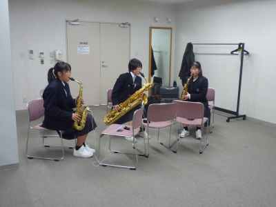 12月26日(金)、彦根市文化プラザで滋賀県アンサンブルコンテスト地区大会が開催されました。本校の吹奏楽部からは校内予選を通過した、垣貫さん(テナーサックス)・梶田さん(アルトサックス)・天野さん(バリトンサックス)の3名が、『サクソフォーン3重奏』で出場しました。演奏曲は『夏のスケッチ』です。この日に向けて一生懸命練習し、本番でもきれいな音色を奏でてくれました。お疲れさまでした。