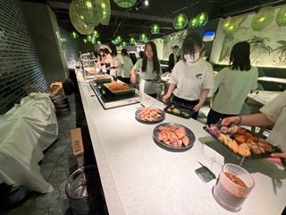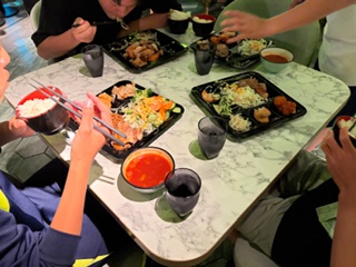 ホテルでの夕食です。女子も男子も、もりもり食べました。1日活動してお腹ペコペコだったので美味しくいっぱいいただきました。どのお料理もとっても美味しかったです。